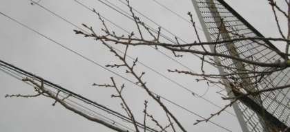 校門横の八重桜のつぼみです。少しずつ膨らんできました。