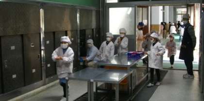 給食の準備が始まりました。