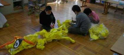 3組は,1年間の作品を整理したりお片付けをしたりしていました。