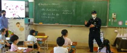 ちょうど2年生が交通安全についての学習をしていましたので,一言いただきました。