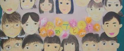 掲示板には,おめでとうのメッセージポスターが掲示されています。