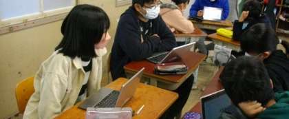 6年生は,プレゼン画面を見せながら,発表をしています。