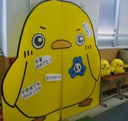 「BIGいちたくん」たちも,卒業生をお祝いしています。