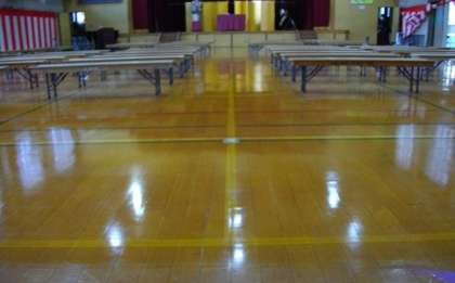 入学式の準備を進めています。体育館の床にワックスをかけました。