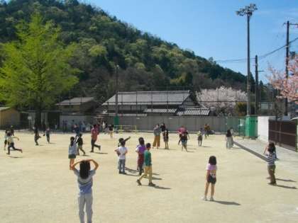 中間休みには,たくさんのお友達が遊んでいます。(何人かの先生も汗だくになった走っています。)