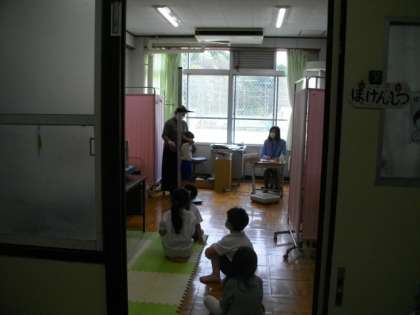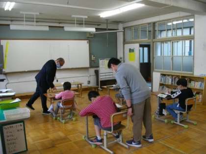 3組は,一言日記を書いているようです。1年生は身体計測をしています。
