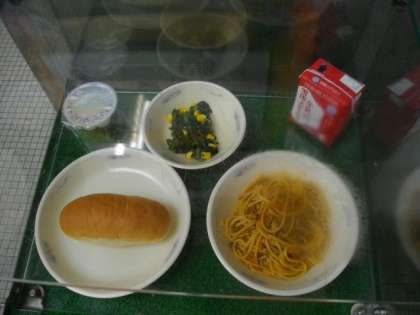 毎年,第1回目の給食献立は,人気のスパゲティです。