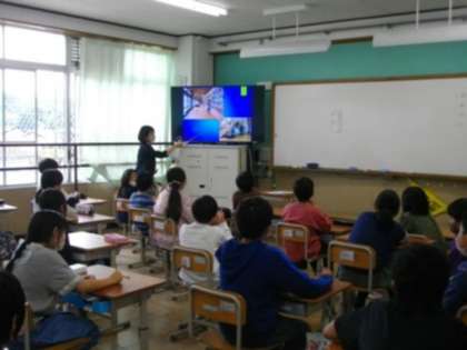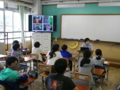5年生は,花背山の家宿泊学習に向けて,施設の概要を写真で見ています。