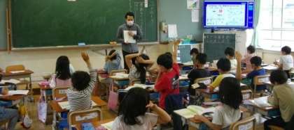 たくさんのお友達が手を挙げて発表しています。