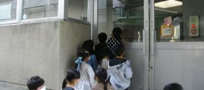 給食室におおきなおなべがあるのをみつけたお友達もいます。
