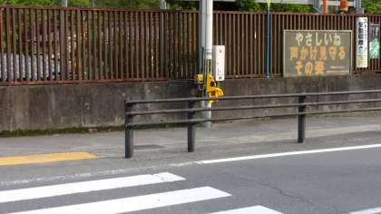 学校北側の横断歩道に,横断旗を設置していただきました。