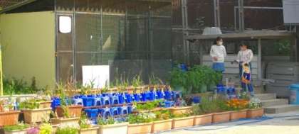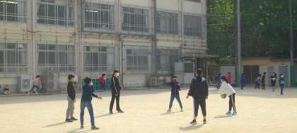 朝休みに,運動場でたくさんのお友達が遊んでいます。園芸委員会のお友達が花に水をやってくれています。ありがとう。