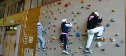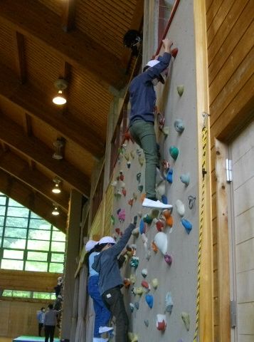 小雨が降っていましたので,予定を変更して体育館でボルダリングに挑戦しました。