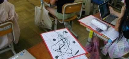 6年生は,水墨画に対する感想をロイロノート・スクールにまとめて提出をしています。キーボードでの文字入力ができるようになると,学習活動の幅が広がります。