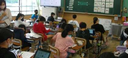 6年生はデジタル教科書を活用しながら外国語科に取り組んでいます。