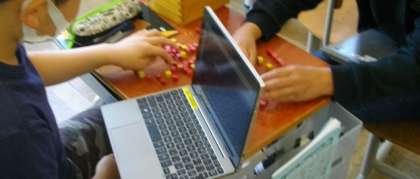 5年生の図工で,写真を組み合わせた動画づくりに取り組んでいます。