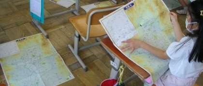 地図とタブレットを併用し,最後にノートに書きまとめました。