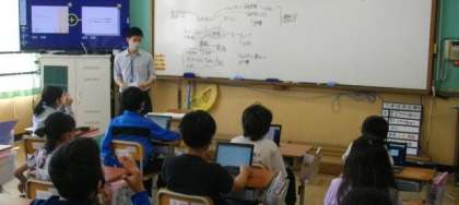 5年生は,「情報社会を生きる」をテーマに,デジタル機器とのよりより使い方について話し合いをしています。