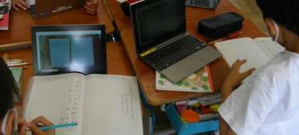 4年生は,国語でタブレットを使って意見交換をした後,ノートにわかったことや考えたことを書きまとめています。