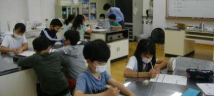 5年生は,家庭科でお茶をいれる練習をしています。