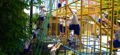 三点支持(三点確保)をして,遊具を移動する練習もしてきました。2年生は,先生が見ているときだけは3階まで登ることができますので,今日は希望者がゆっくりと上がる練習をしました。