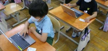 1年生は,タブレットのログインに挑戦しています。IDとPWを大切に保管して,たくさん使ってくださいね。
