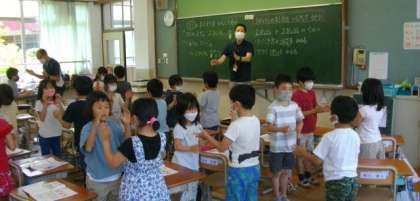 2年生は,音楽ではくのまとまりを感じながら,手拍子をしたりひざをたたいたりして活動しています。