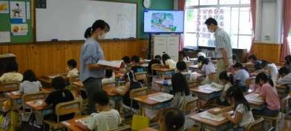1年生は,道徳の時間に,教科書の挿絵をみながら,町の人がどんなことをしているのかを,見つけています。正しい行動を心がけることで,安心・安全に暮らすことができますね。