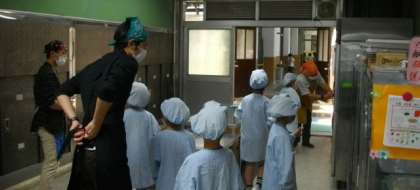 給食の準備が始まりました。