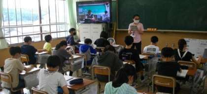 鞍馬小学校のお友達も,Teamsでつながっていっしょにお話を聞いています。