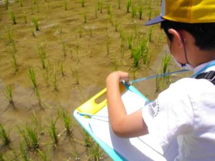 3年生は先月16日に田植えをした稲の様子を観察しに行ってきました。