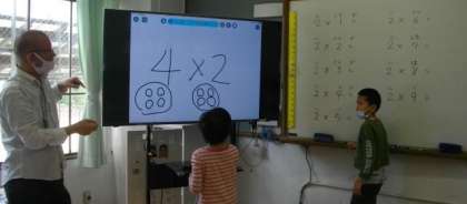 3組では,かけざんの意味について,図を描きながら学習をしています。