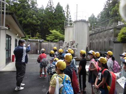京都市上下水道局の方においでいただき,静原浄水場の中を見せていただきました。