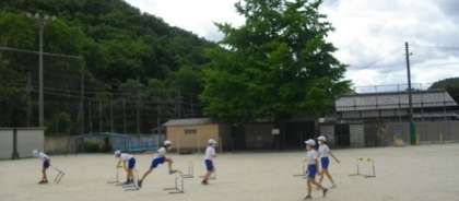 6年生がハードル走に取り組んでいます。以前にも取り組んだことがあるので,自信をもって走っています。3組は,学級紹介の動画を作るために,場面の設定について話し合っています。