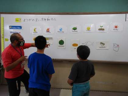 外国語の時間では,曜日の言い方を学習しています。