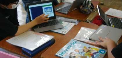 6年生の外国語科では,日本の紹介をガイド役と観光客役になって進めています。