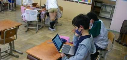 5年生は,身近なところで情報技術がどのように使われているのかを話し合い,ロイロノート・スクールにまとめています。