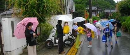何人かの子どもたちは,「おはようございます」といって「いちたくん」を”なぜなぜ”していました。