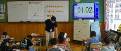 1,2年生は算数の復習問題に取り組んでいます。