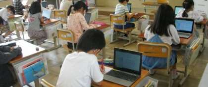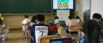 3年生は,5時間目が始まる前に,かけ算の復習をしています。