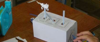 6年生は,図画工作科で,クランクの仕組みを使った動くオブジェづくりに取り組んでいます。