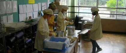 給食の準備が始まりました。