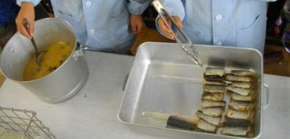給食では,ゆず果汁ベースの下味に漬けた後,スチコンで焼きあげました。ゆずのさわやかな香りとさっぱりとした味を楽しむことがでいました。