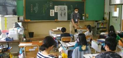 4年生は,書写で「はす」の字を練習しています。筆を立てて,軸を回さずに書く練習をしています。理科では空気の性質について意見交換をしています。