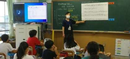 6年生の音楽では,オーケストラのひびきを感じながら演奏を聞いています。