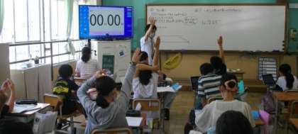 5年生は,小数÷小数の計算の仕方を考えています。考え方をノートに書き記したり,タブレットを使ってまとめたりしています。