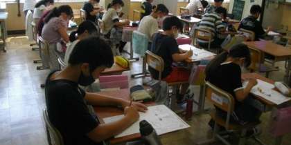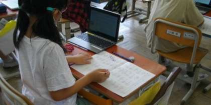 昼の帯時間(5校時前)の学習の様子です。ロイロで配信された解答をみて,〇つけをしています。