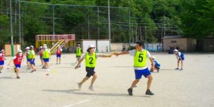 部活動で,リレーに取り組んでいます。