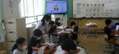 5年生は,外国語科で,曜日ごとの時間割を尋ね合っています。