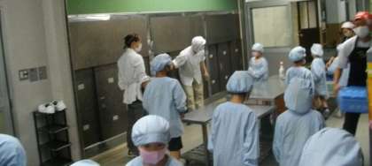 給食の準備が始まりました。